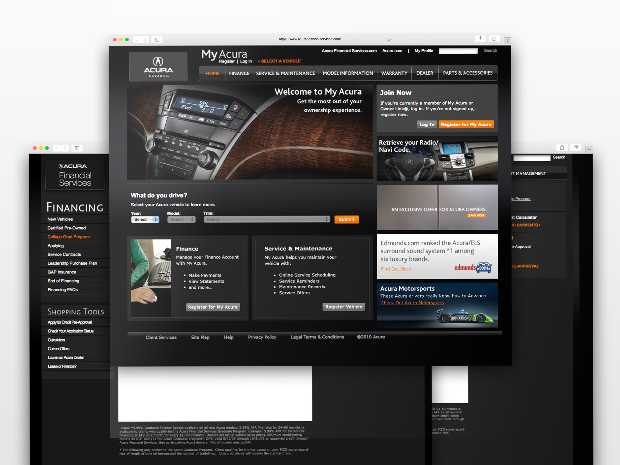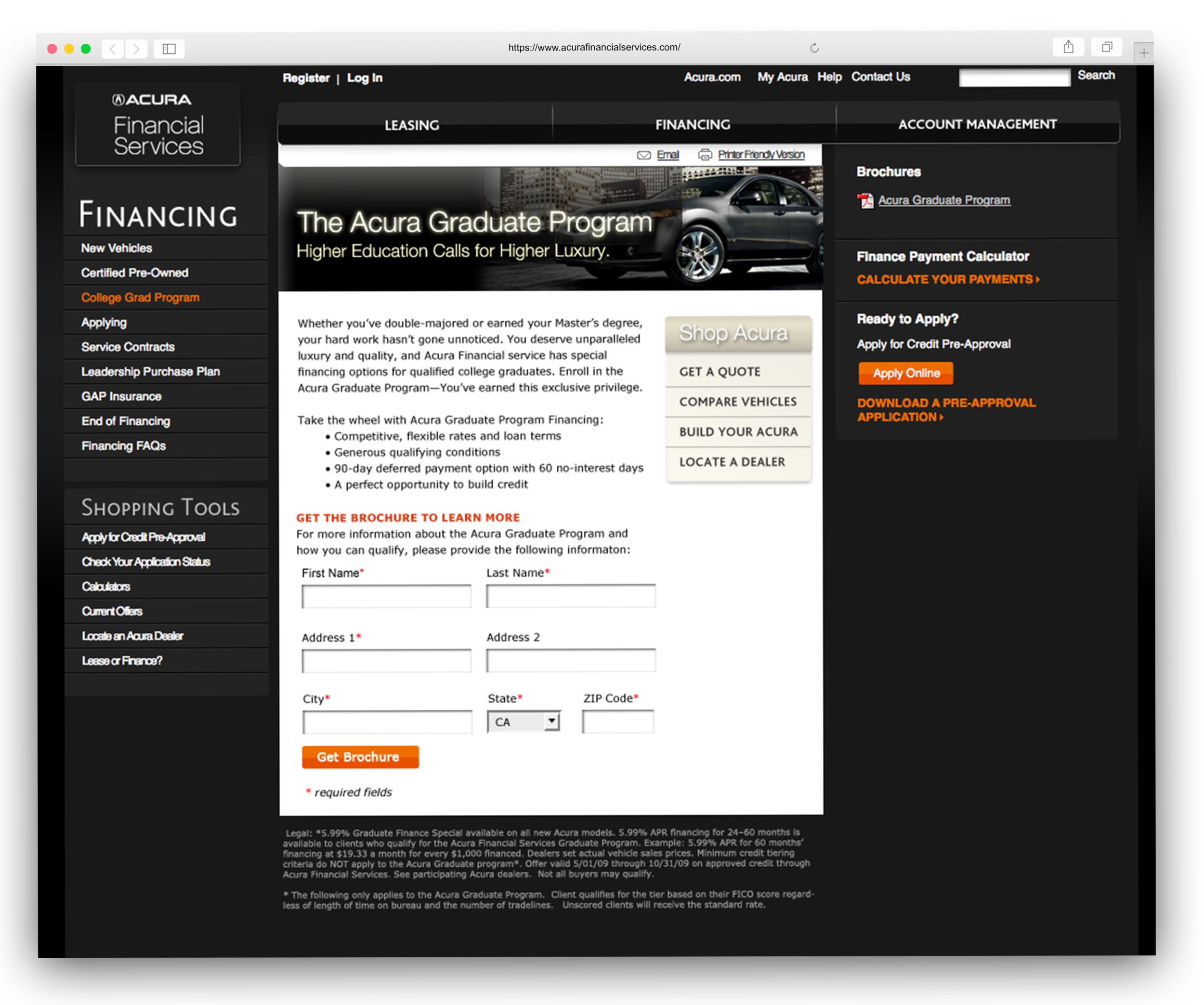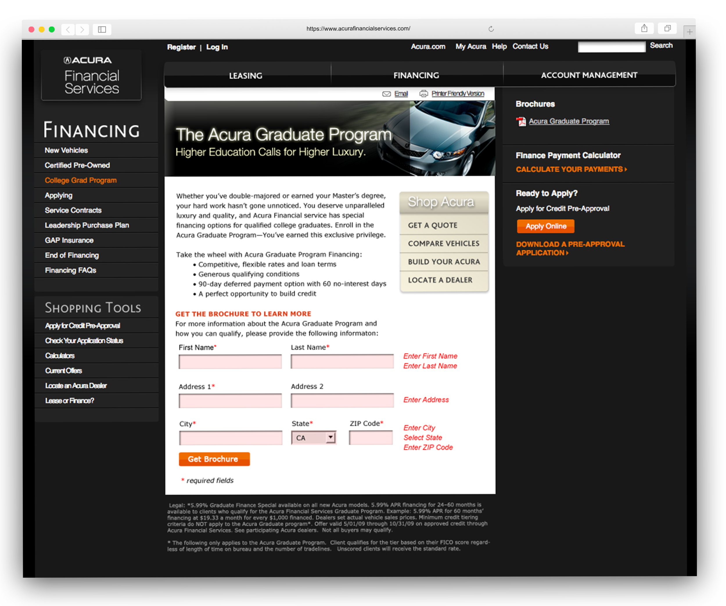 Digital art direction of product landing pages, online forms and display advertisements for Acura Financial Services.