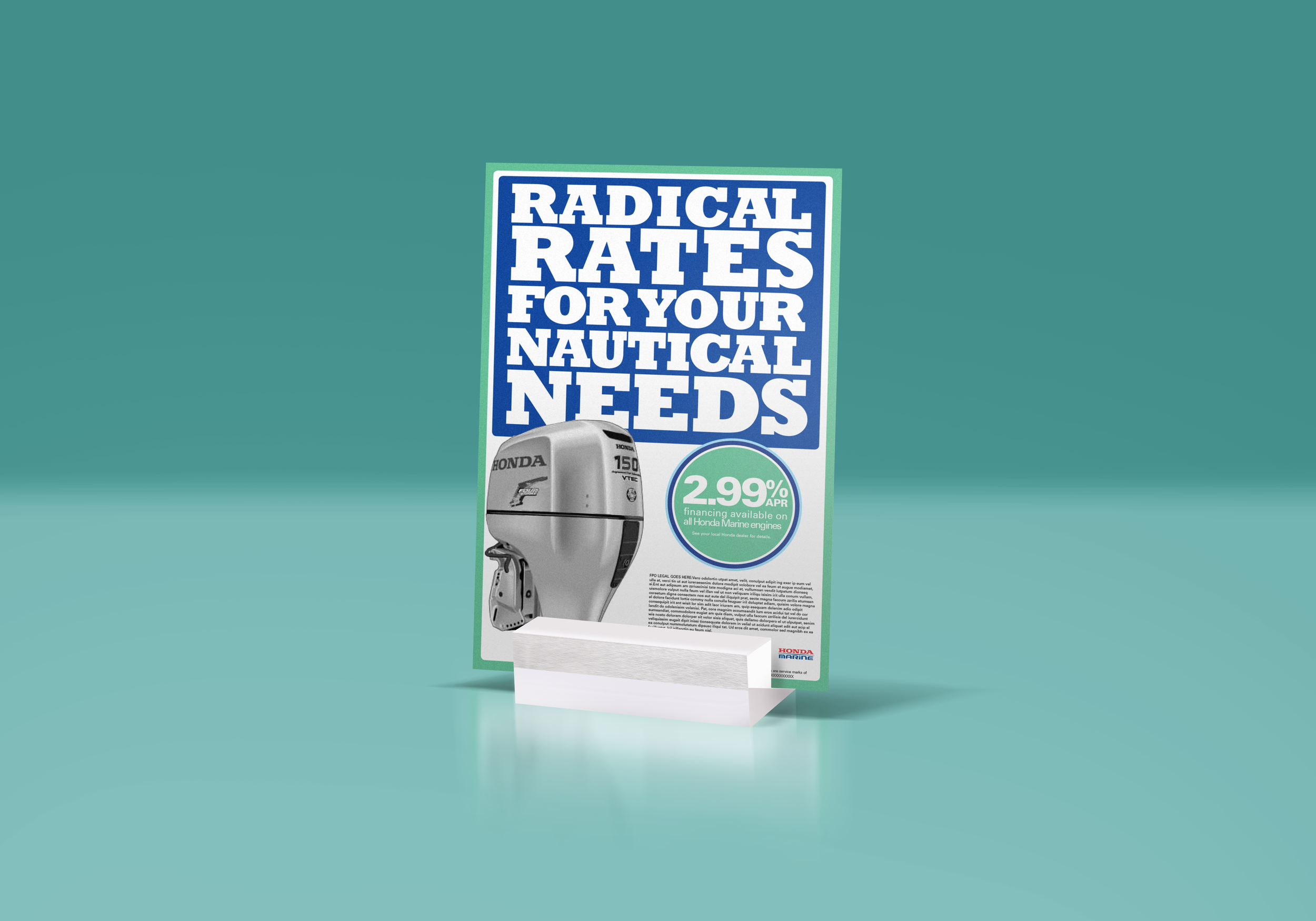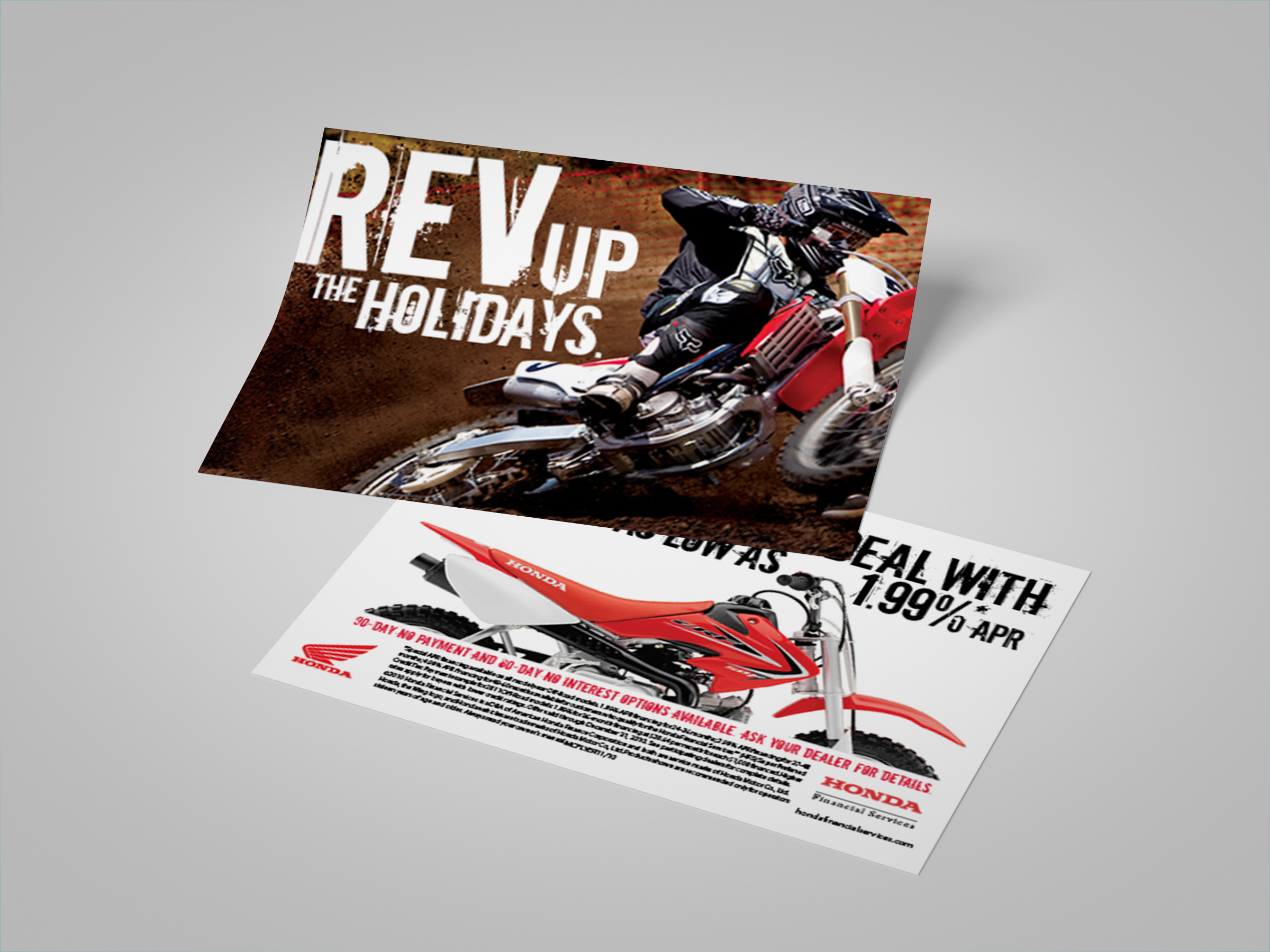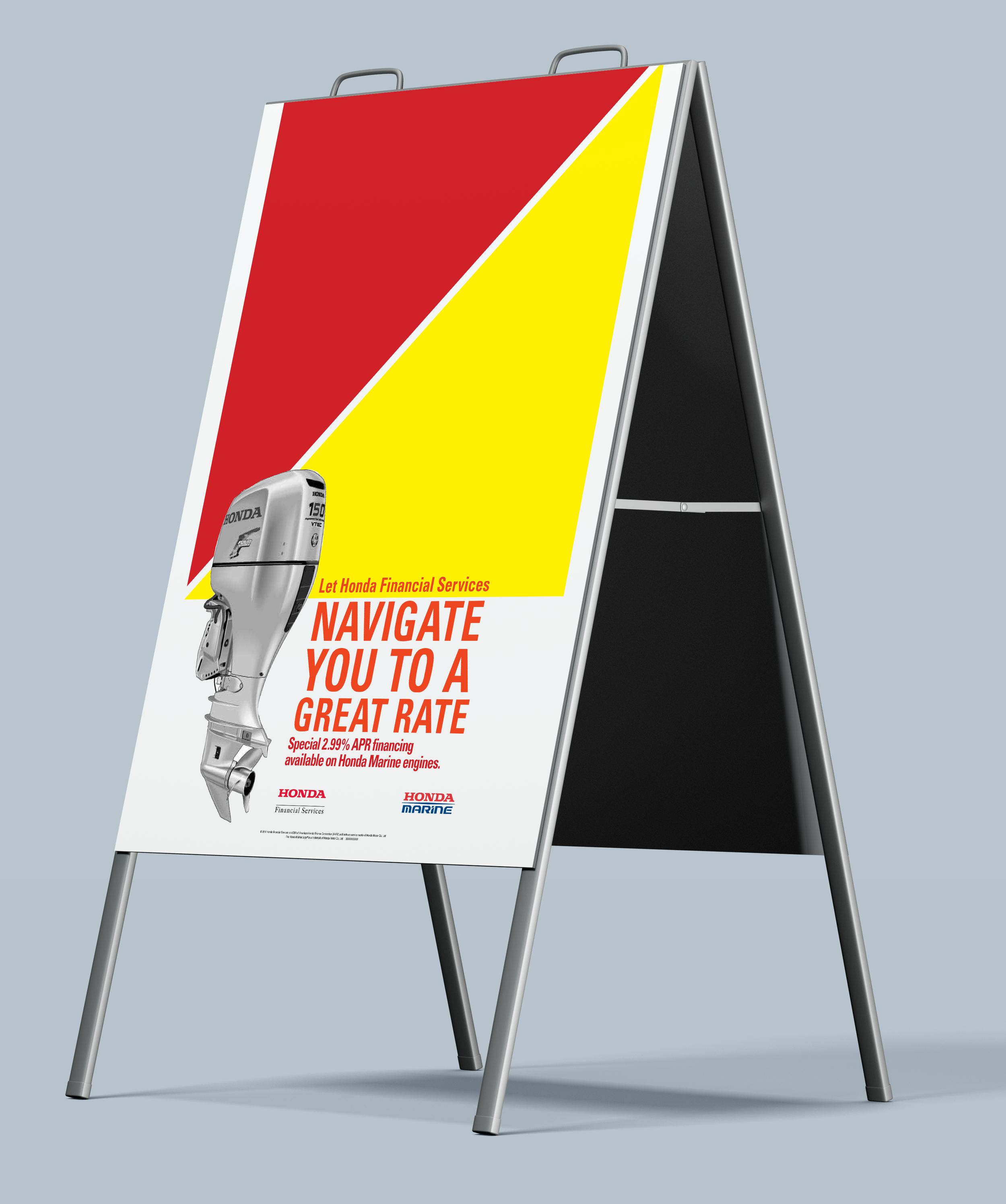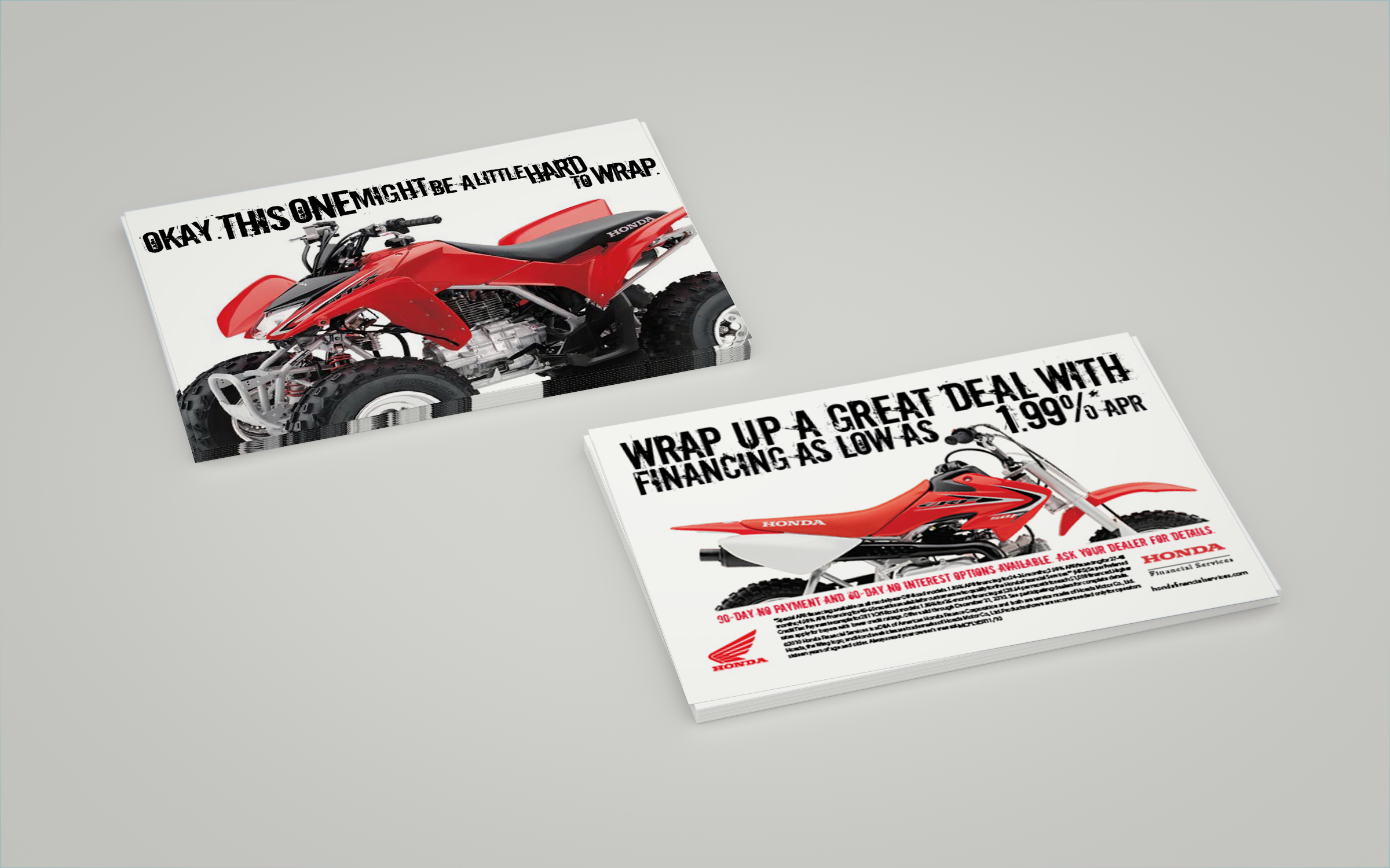 Art direction and design of direct mail, point-of-sale and showroom display advertisements for Honda Financial Services.